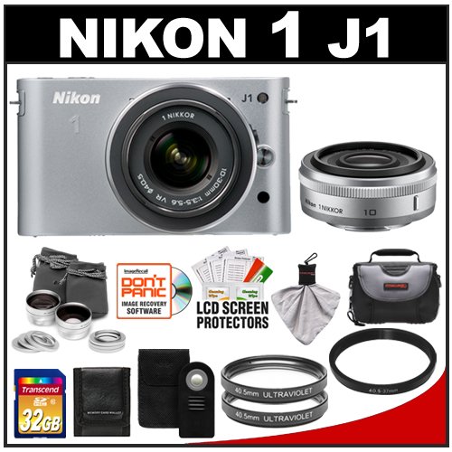 Nikon 1 J1 10.1 MP Digital Camera Body with 10mm f/2.8 & 10-30mm VR Lens (Silver) with 32GB Card + Case + (2) UV Filters + 2x Telephoto & .45x Wide-Angle Lens Set + Wireless Remote + Accessory Kit Review